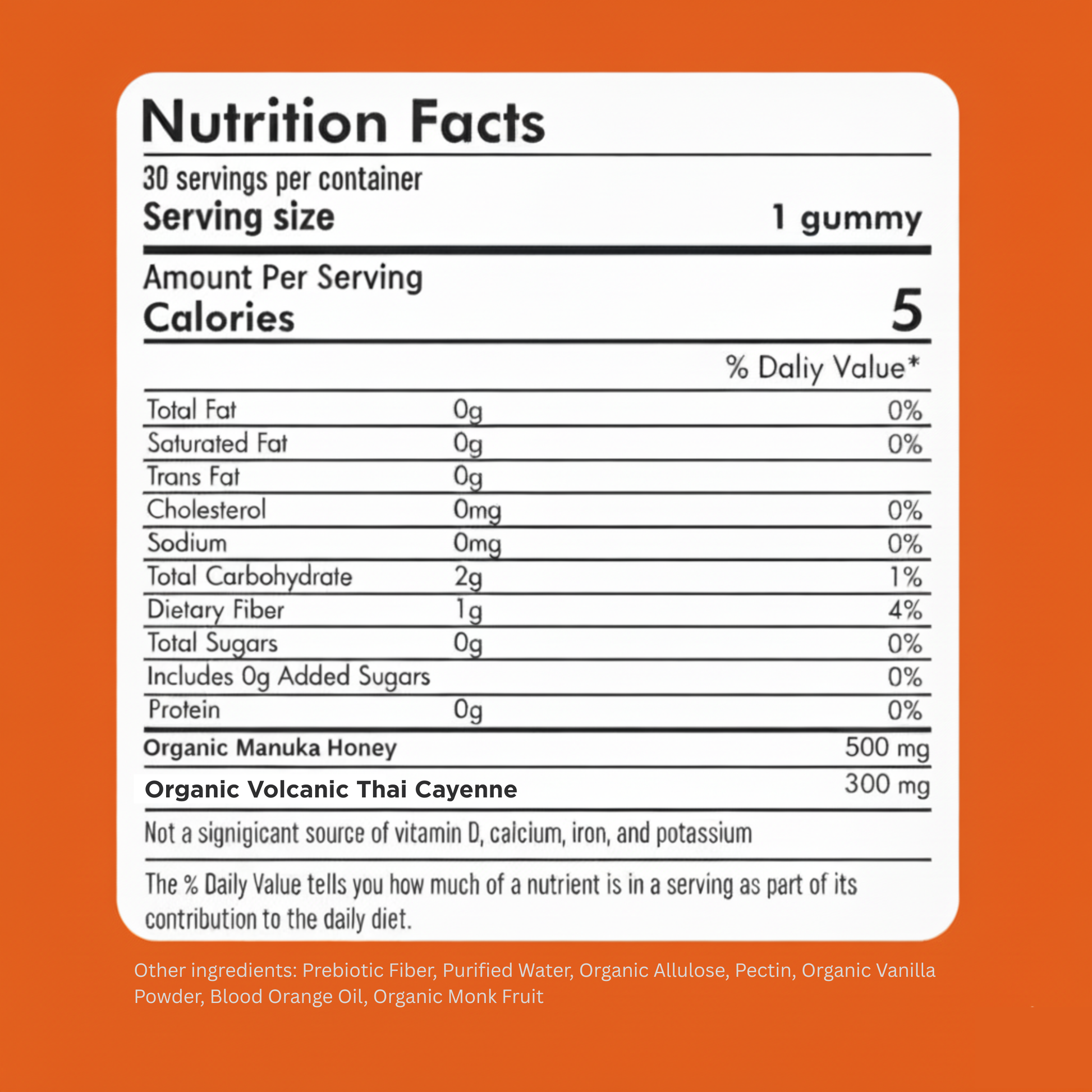 Manuka Honey brings the perfect smooth sweetness to balance the pepper's heat, making every gummy a tasty boost for your energy and confidence. It's like nature's secret sauce for keeping you at peak performance in the sack.
